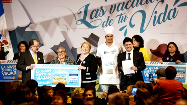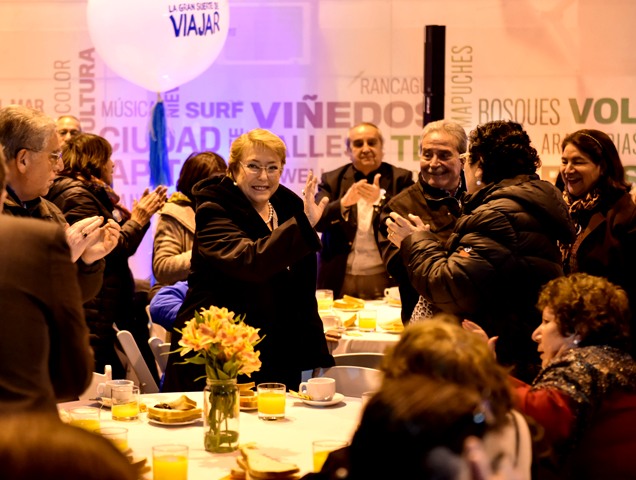 SANTIAGO (Chile), 08 de Septiembre — 2017.- “Si ustedes entregan tanto a nuestro país lo mínimo es que tengan la posibilidad de darse un regaloneo, de descansar recorriendo nuestra geografía y que además los atiendan bien”, afirmó la Presidenta Michelle Bachelet al aludir a más de 50 mil adultos mayores beneficiados con el programa “Vacaciones Tercera Edad”.
