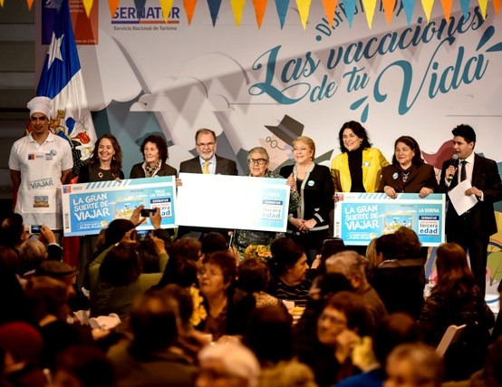 SANTIAGO (Chile), 08 de Septiembre — 2017.- “Si ustedes entregan tanto a nuestro país lo mínimo es que tengan la posibilidad de darse un regaloneo, de descansar recorriendo nuestra geografía y que además los atiendan bien”, afirmó la Presidenta Michelle Bachelet al aludir a más de 50 mil adultos mayores beneficiados con el programa “Vacaciones Tercera Edad”.