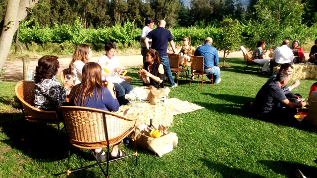 Una vez concluida la ceremonia, los dueños de casa, la Viña Escondida de Colchagua, invitaron a los asistentes a disfrutar de sus jardines en medio de un entorno privilegiado de cerros, vegetación y mucha historia vinculada a los campos y a un clandestino de inicios del siglo XX, antiguas instalaciones donde hoy se emplaza la viña.