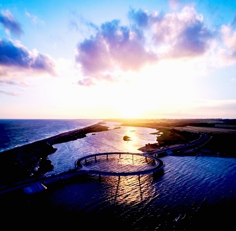 Desde el original puente, que data de diciembre de 2015 y mide 5 metros de ancho y 323 metros de longuitud, se experimenta la fusión entre arquitectura y belleza natural. Su apariencia de anillo sostenido por una serie de columnas permite el libre flujo de los cambios de la laguna y además el uso de embarcaciones, un elemento típico del lugar.