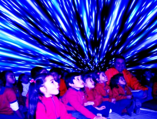 Luego, los visitantes ingresan al Planetario 3D para realizar un viaje por el espacio y después podrán observar el sol con lentes eclipse, con un filtro especial para ver el sol en su color natural y su corona, para posteriormente con un potente telescopio solar ver las erupciones solares.
