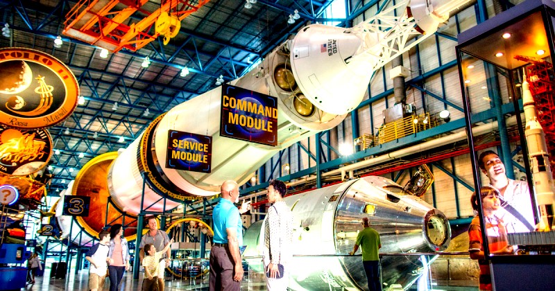 El Kennedy Space Center Visitor Complex da vida a la épica historia del programa espacial de Estados Unidos, que ofrece un día completo o más de actividades informativas y educativas, incluyendo el tour por el Kennedy Space Center que lleva a los visitantes al Centro Apollo / Saturno V donde se encuentra el cohete lunar Saturno V (real), la exhibición del Transbordador Espacial AtlantisSM, (Space Shuttle AtlantisSM), el Simulador de Lanzamiento (Shuttle Launch Experience), películas del espacio presentando A Beautiful Planet en IMAX® 3D y Journey to Space en 3D, Encuentro con el Astronauta (Astronaut Encounter), Journey To Mars: Explorers Wanted (Viaje a Marte: Se buscan Exploradores), Science on a Sphere®, Rocket Garden (Jardín de los Cohetes), Cosmic Quest, Héroes & Leyendas presentando U.S. Astronaut Hall of Fame y muchas otras exhibiciones interactivas.